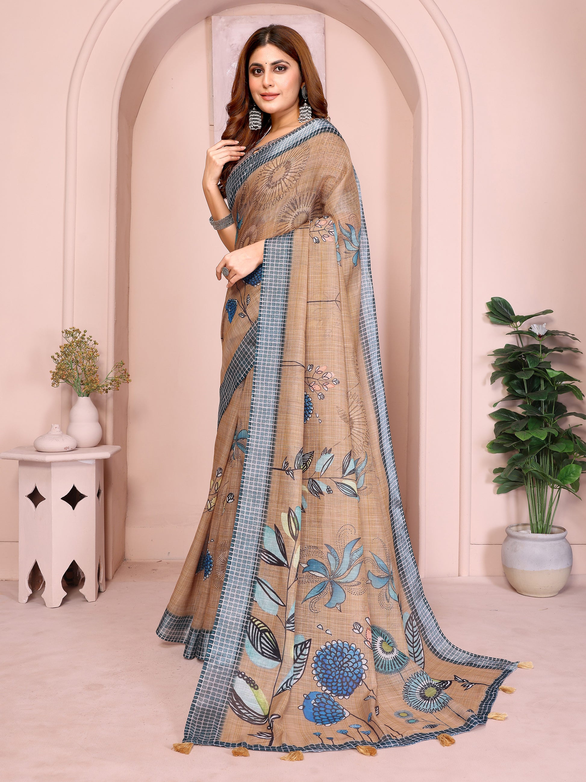 Made from soft and breathable linen cotton, this saree combines everyday comfort with timeless elegance. The lightweight texture ensures an easy drape, perfect for long hours of wear without compromising style.