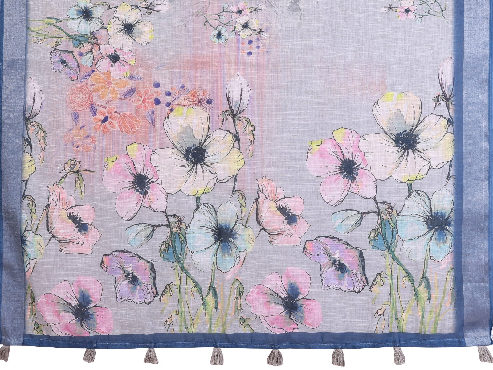 Elegant Steel Blue Linen Cotton Saree with Pastel Floral Prints