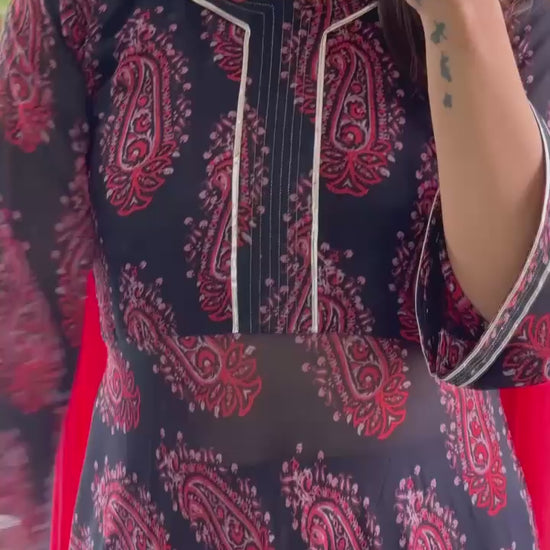 These pure print georgette Suit Sets are beautifully crafted with finest hand embroidery and prints, 😍 it is paired with matching pants and digital printed pure georgette Dupatta, a perfect outfit for upcoming celebrations or trousseau packing. It comes with lining.