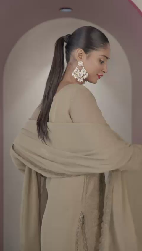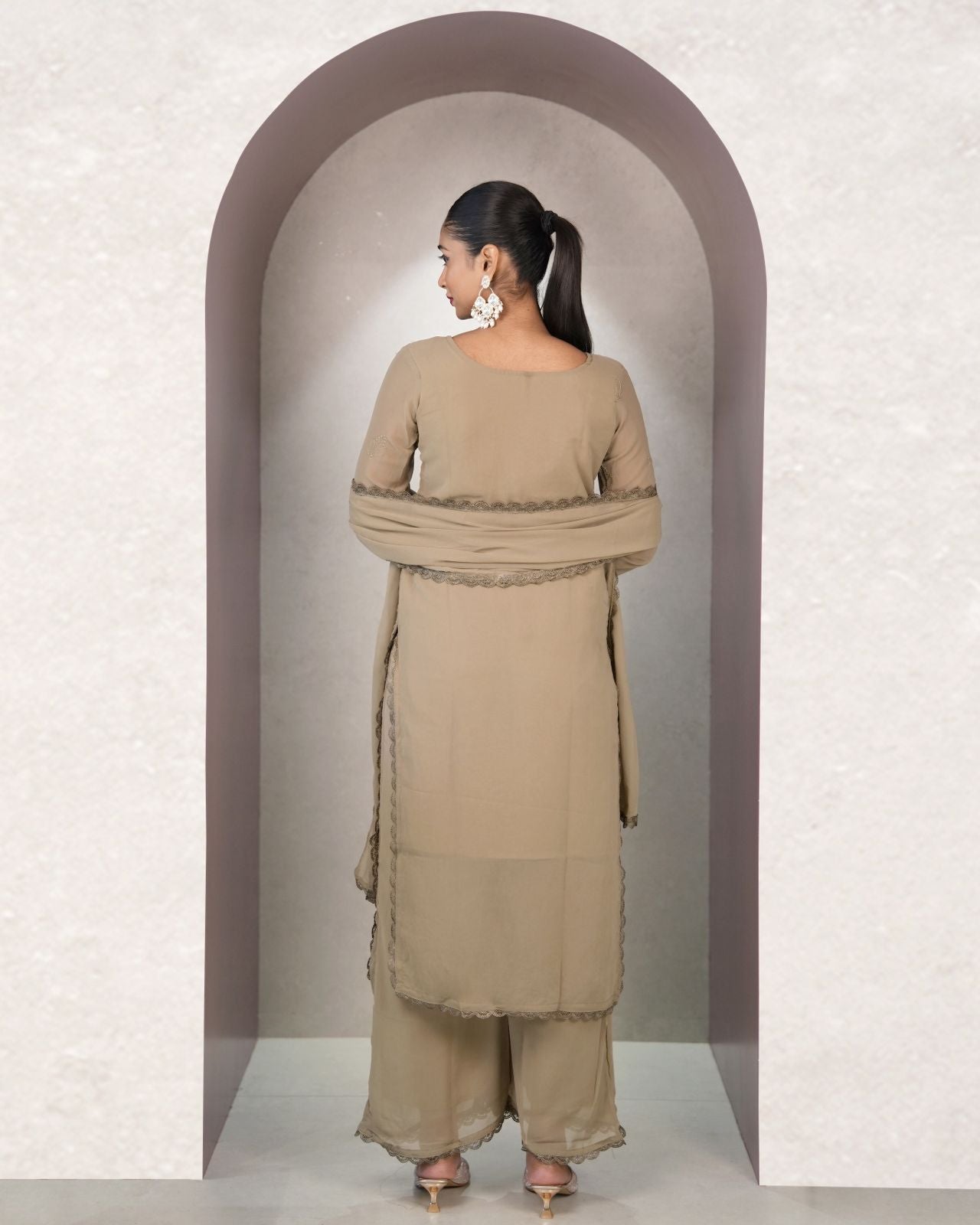 Featuring soothing yet fox georgette Febric with chikankari embroidery work and full lining with Grorgett dupatta embroidery work with lace elegant work gown with Color.Long suit with side cut style and pettern. It is a perfect outfit for any small gathering or function. It is very comfortable as it looks