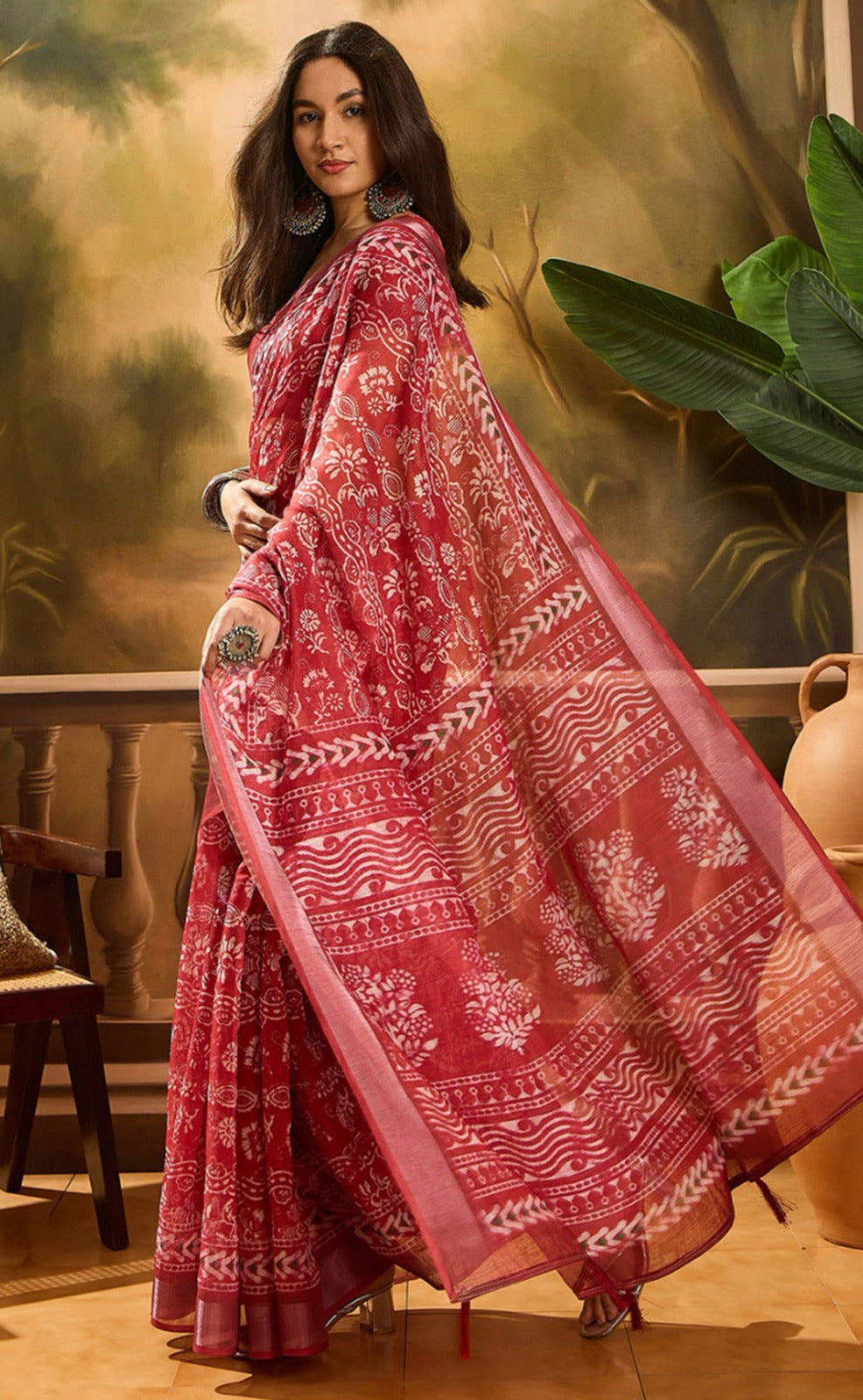 : Made from soft and breathable linen cotton, this saree combines everyday comfort with timeless elegance. The lightweight texture ensures an easy drape, perfect for long hours of wear without compromising style.