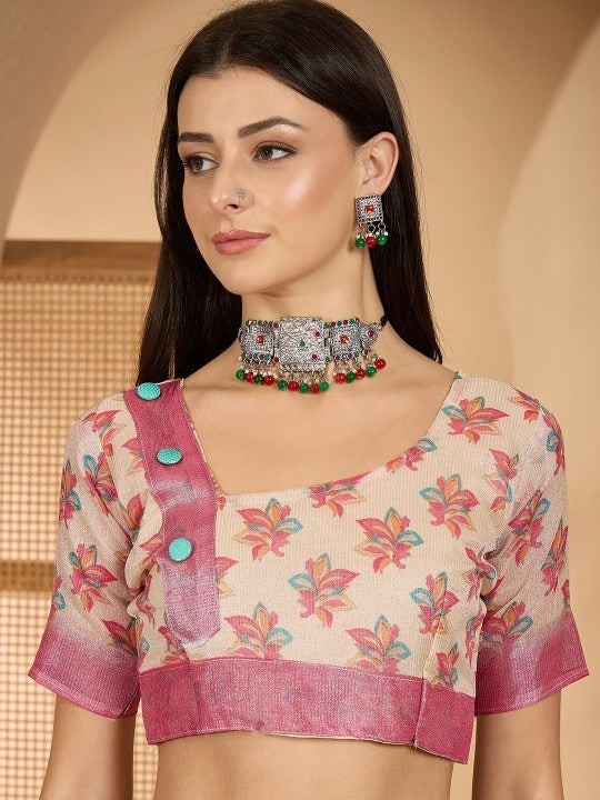 Vibrant Artistic Digital Print Linen Cotton Saree